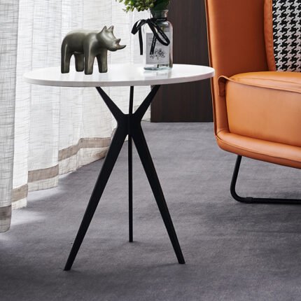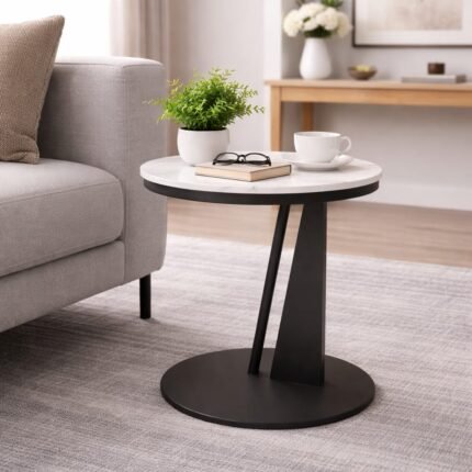 MODERN MARBLE TOP PEDESTAL SIDE TABLE WITH BLACK BASE