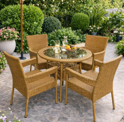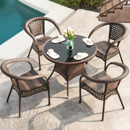PREMIUM HANDWOVEN RATTAN OUTDOOR PATIO DINING CHAIR SET