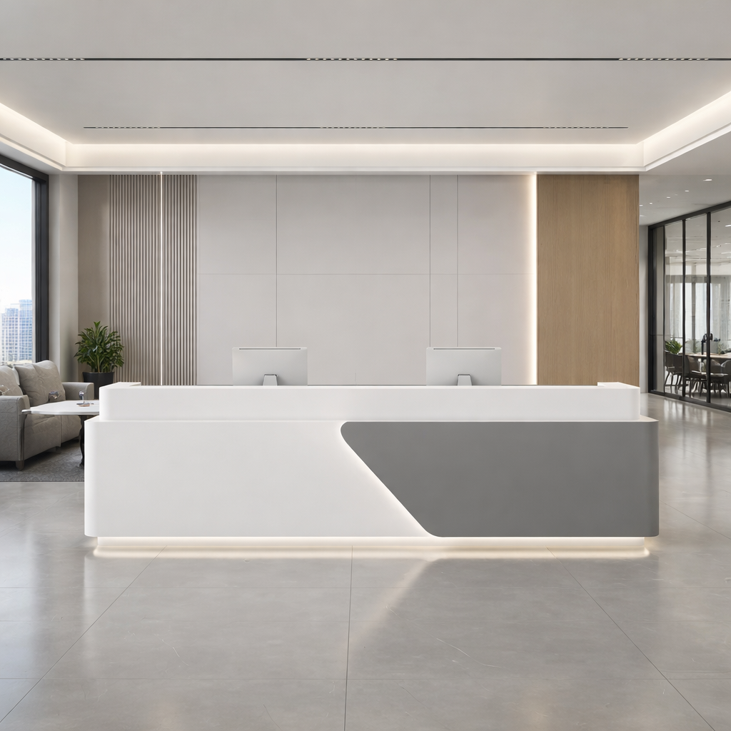 Overall, this desk combines functionality, privacy, durability, and visual appeal. It does not simply hold equipment — it shapes first impressions. By presenting order, cleanliness, and professionalism, it reassures visitors they are in a well-managed, trustworthy environment, making it an ideal centerpiece for any reception area seeking both elegance and practicality.