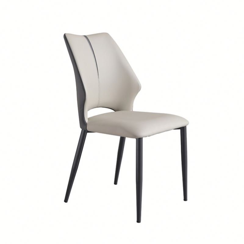 Accompanying the table are four comfortable chairs, designed with a unique blend of style and comfort. Each chair features a curved, ergonomic backrest with a two-tone design. The caramel-colored seats are soft and inviting, while the dark gray backrests create a modern contrast. The black metal legs of the chairs align seamlessly with the table, adding a cohesive and sophisticated look to the set.