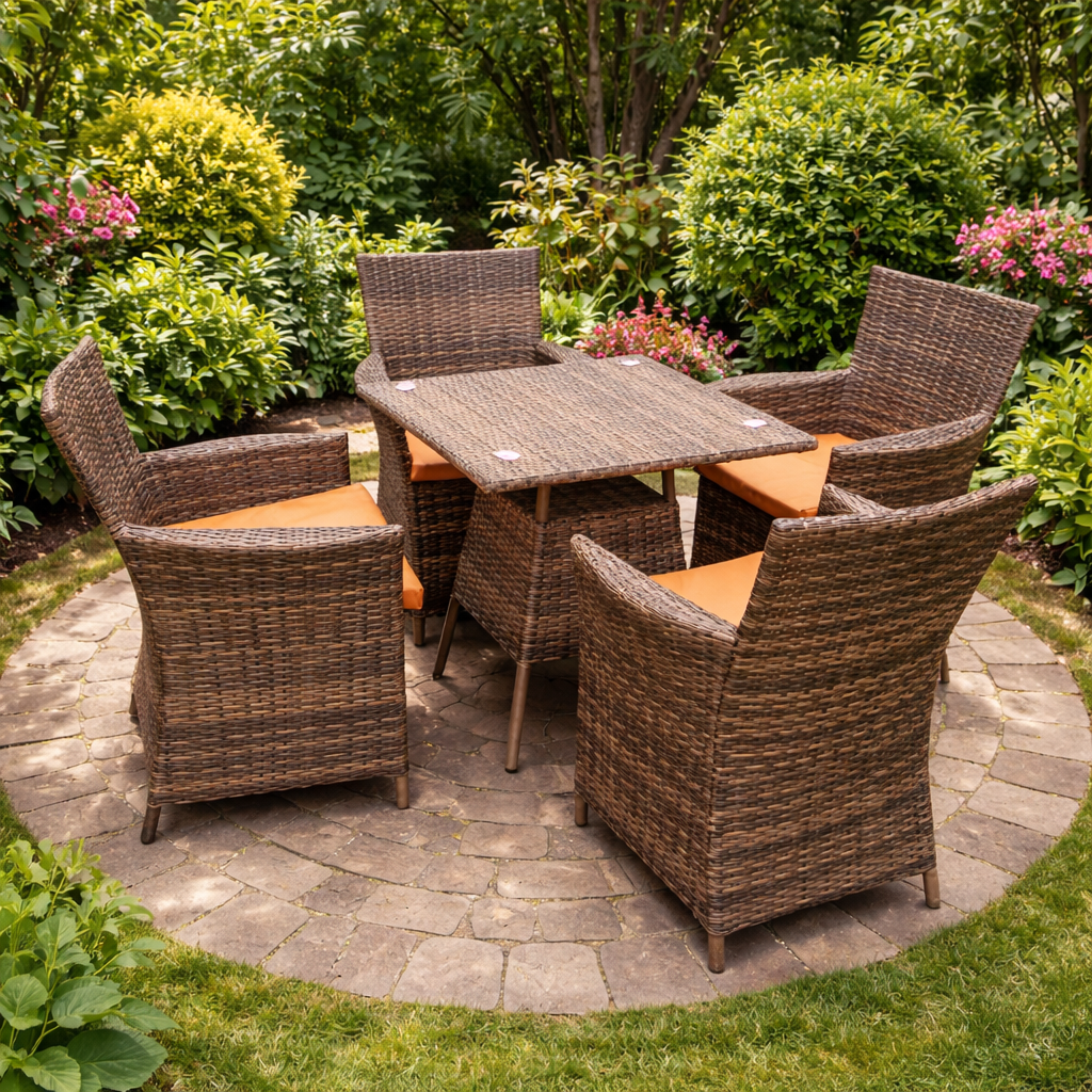 MODERN OUTDOOR RATTAN DINING CHAIR SET