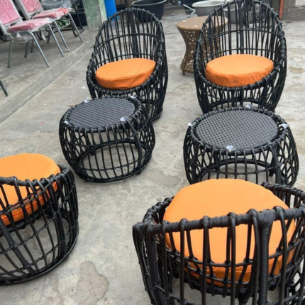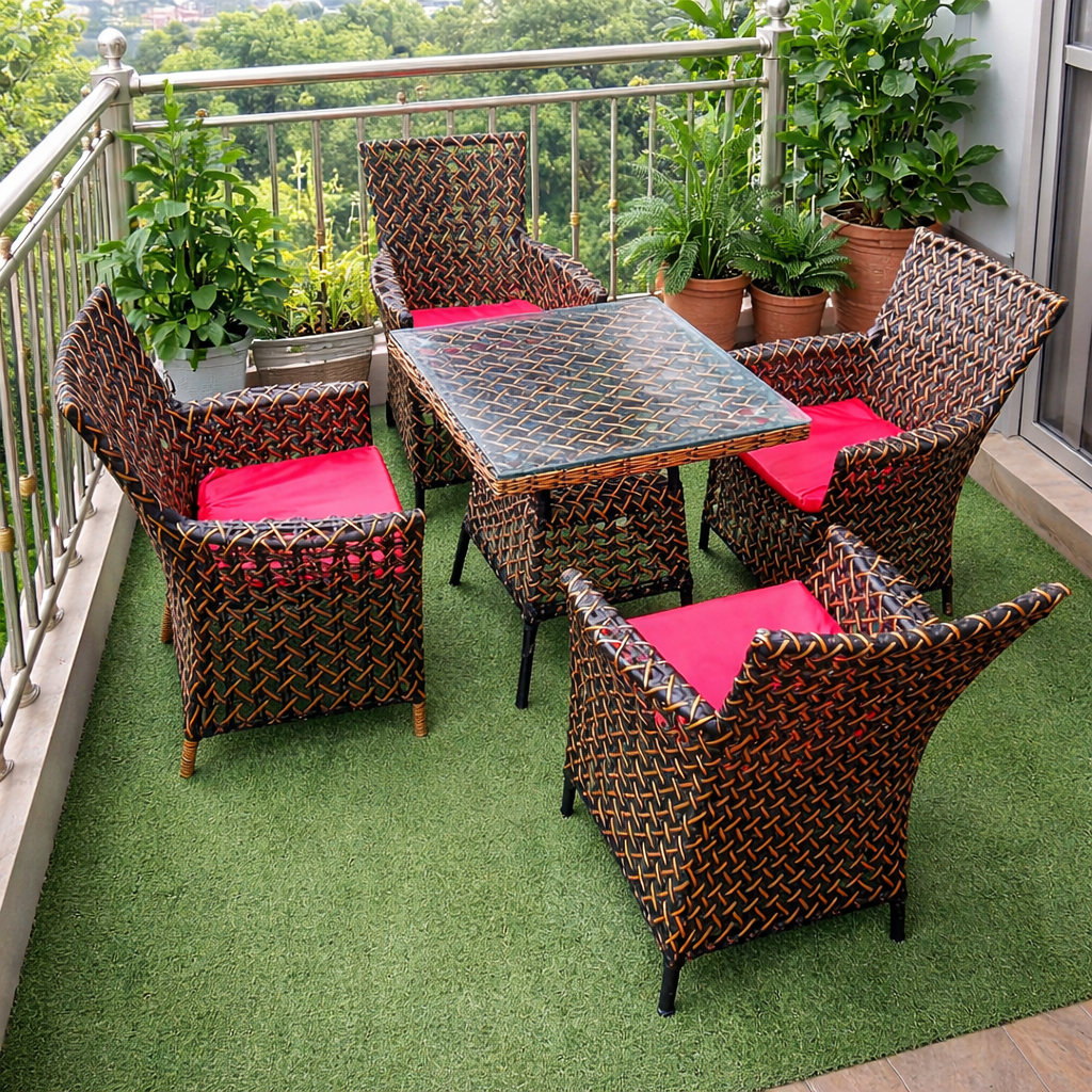 This chair setting is a perfect blend of modern elegance, comfort, and outdoor durability, designed to instantly elevate any patio, garden, terrace, or outdoor dining space. The arrangement features a beautifully coordinated set of woven chairs paired with a sleek, glass-top table, creating a refined and inviting environment ideal for both everyday use and special gatherings.