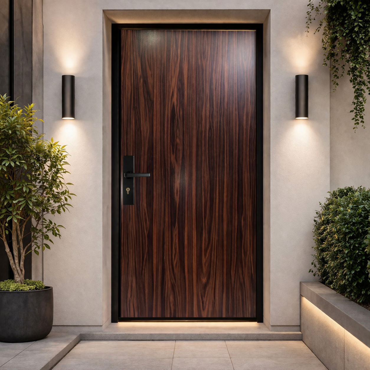 The Premium rosewood interior security door is a refined blend of modern simplicity, durability, and timeless elegance, designed to elevate interior spaces with understated luxury. Crafted to deliver both aesthetic appeal and dependable performance, this door stands out as a perfect choice for contemporary homes, offices, apartments, and executive spaces.