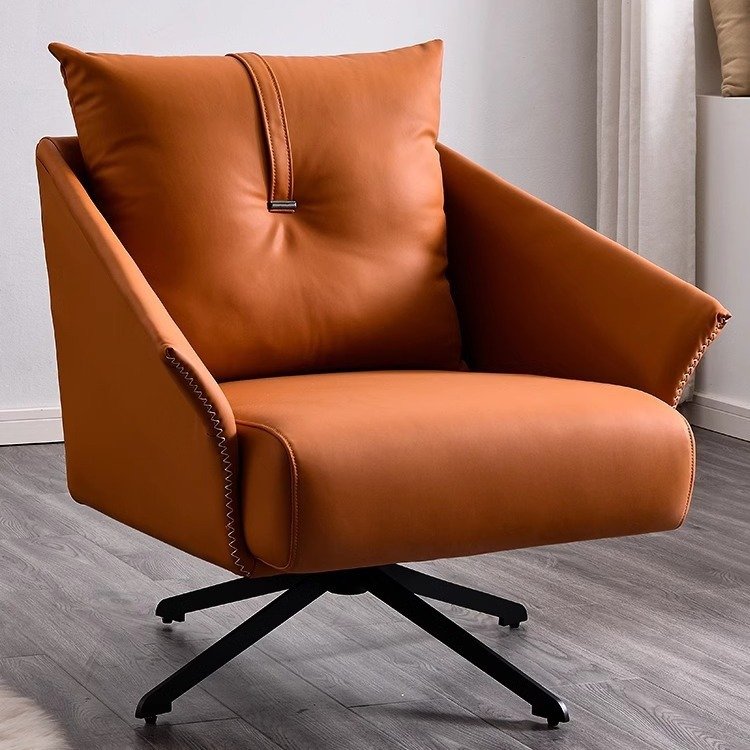 This chair functions as both a statement accent piece and a practical everyday seat. Its warm tone, precise stitching, and smooth swivel functionality combine to create a piece that feels luxurious without being overstated — ideal for interiors that value understated sophistication and lasting comfort.